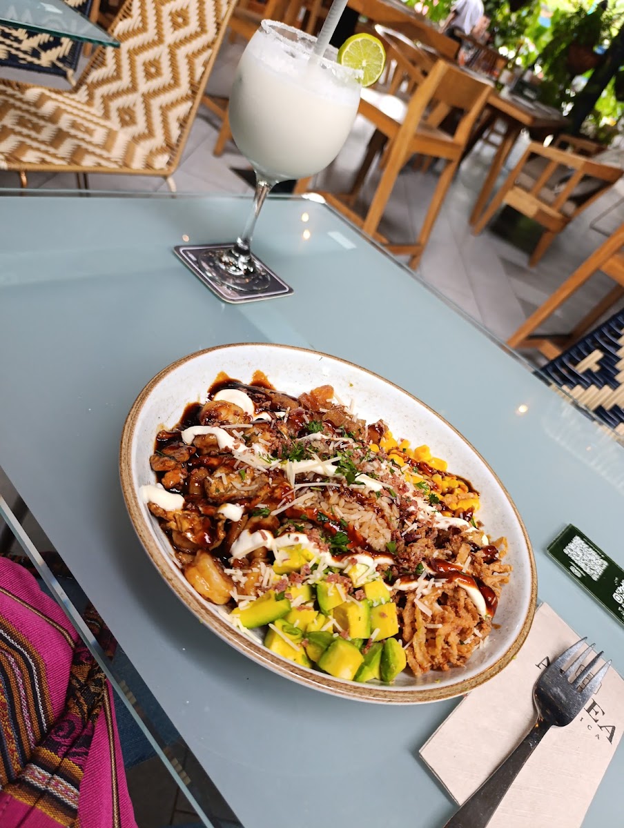 The menu is built around balance and texture. One of the standout options is the Bowl con Base Quinoa Aguacate Seaweed Pico de Gallo Salsa UKI Pescado Crocante. It’s layered, colorful, and satisfying, with crispy fish paired against creamy avocado and vibrant pico de gallo. The quinoa base adds substance without feeling heavy, making it a favorite for diners looking for something filling yet fresh. Another popular choice is the Pollo Crispy Cerdo Barbacoa en Bowl, which blends crunchy chicken with rich barbecue-style pork for a bold, comforting bite.